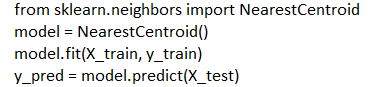 Which scikit-learn command correctly trains a Nearest Centroid Classifier on training data X_train and y_train and makes predictions on X_test?