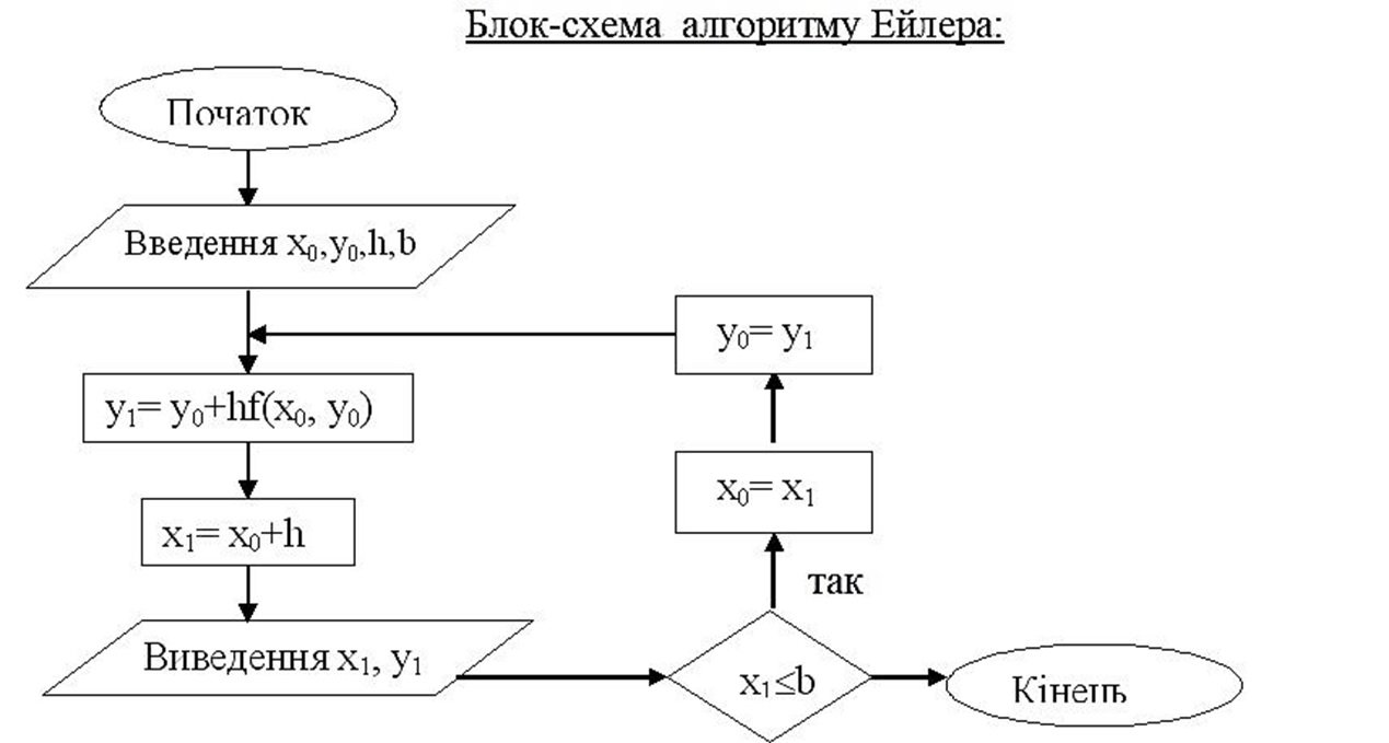 Дивлячись на блок-схему, яка ітераційна формула відповідає простому методу Ейлера?