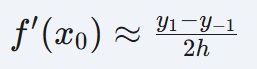 Яка формула є симетричною формулою для чисельного знаходження ПЕРШОЇ похідної?