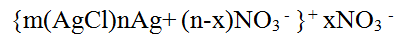 Які частинки міцели, будова якої зображена формулою , знаходяться в адсорбційному шарі?