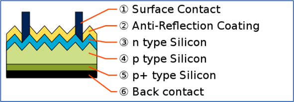 Le titre de la figure est : Structure type des cellules solaires au silicium cristallin.