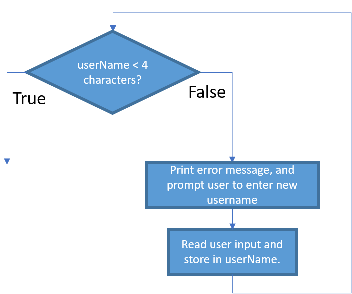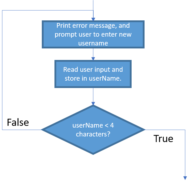 System.out.println("Your username cannot be less than four characters. Please enter a new username: ");