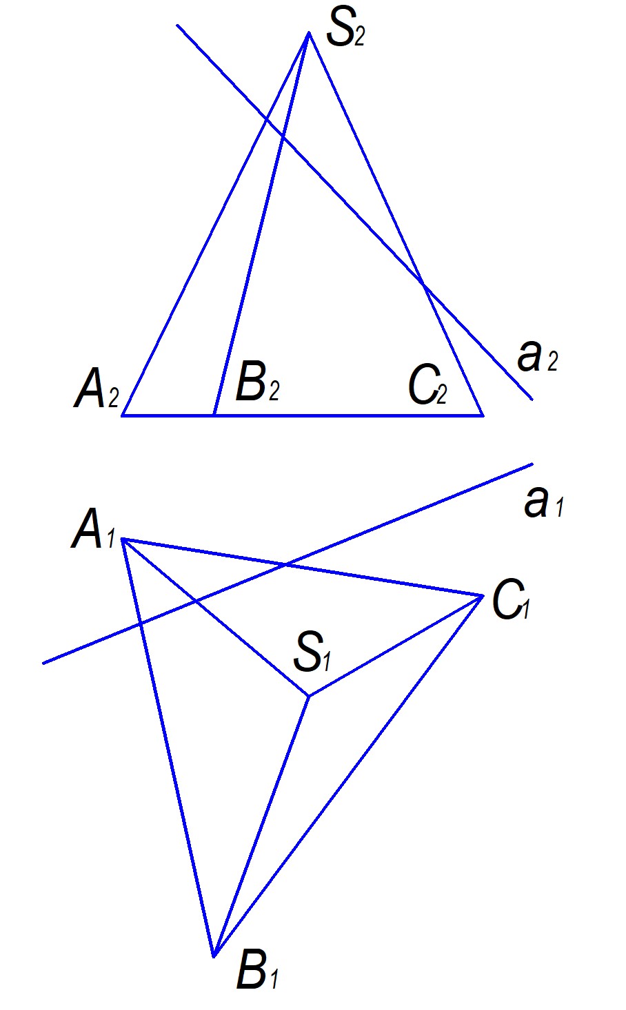 На ... чертеже точка А принадлежит поверхности пирамиды.