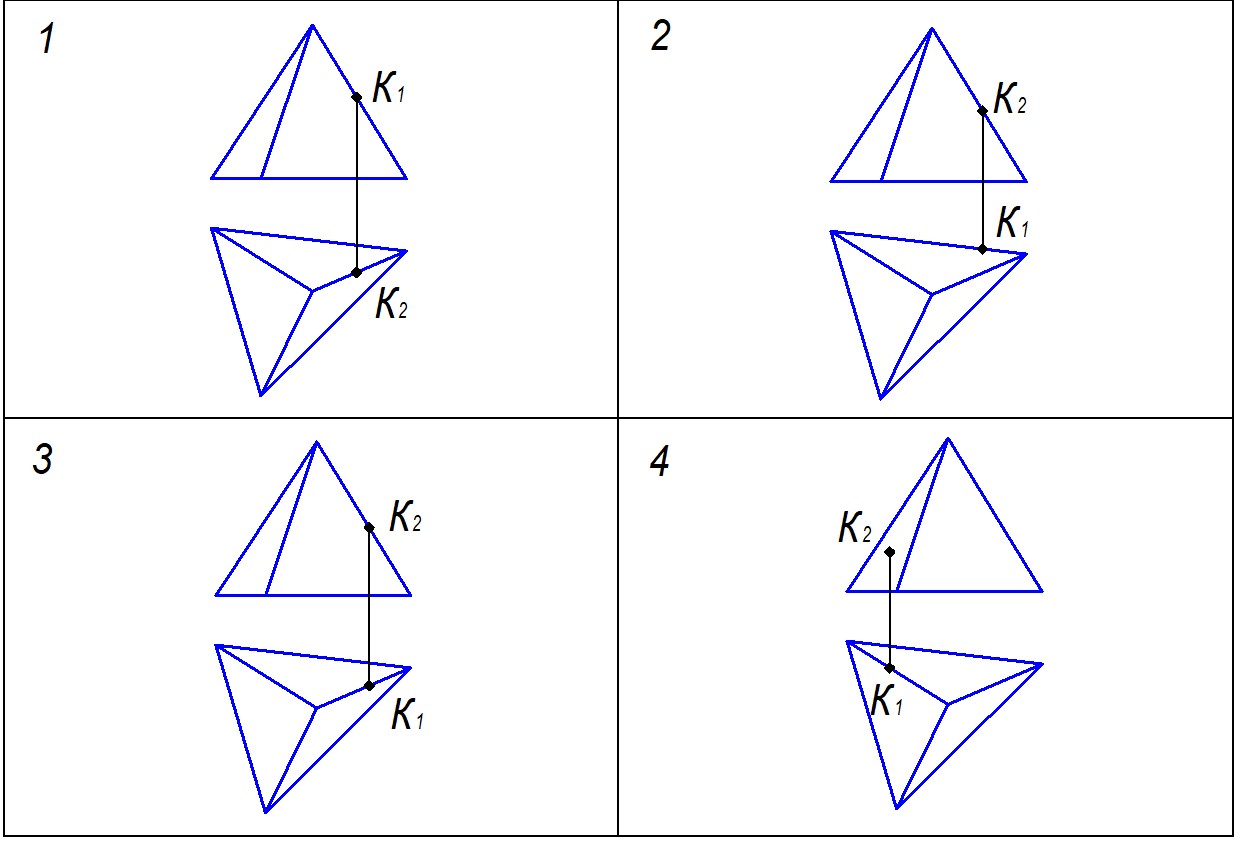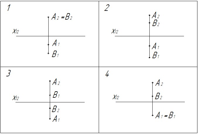 Две точки конкурируют относительно плоскости П1 на чертеже...