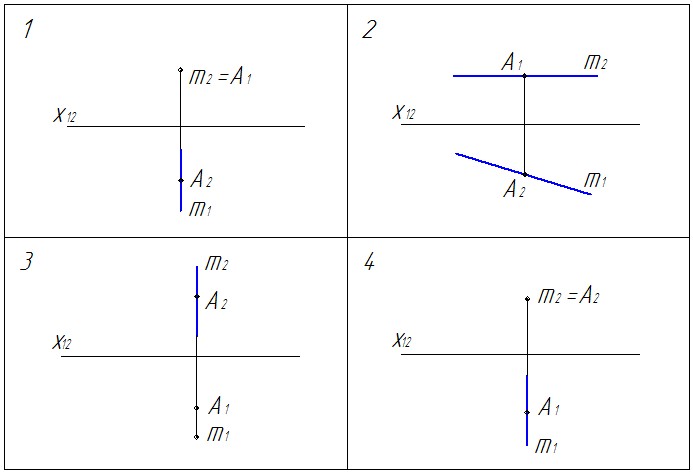 На ... чертеже точка А принадлежит прямой т.