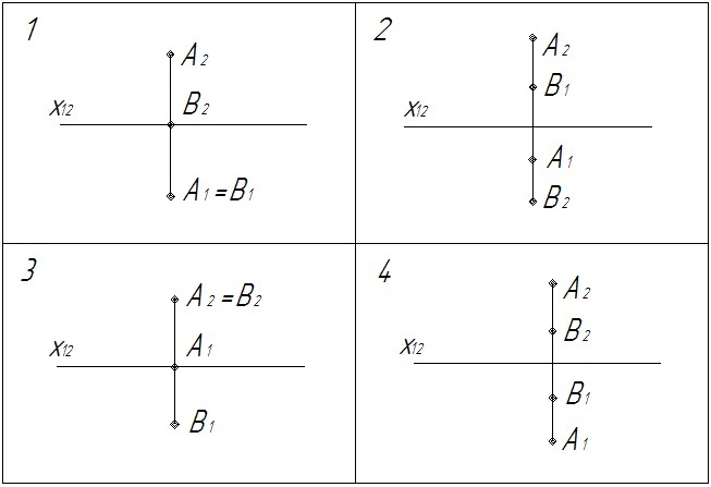 Две точки конкурируют относительно плоскости П1 на чертеже...