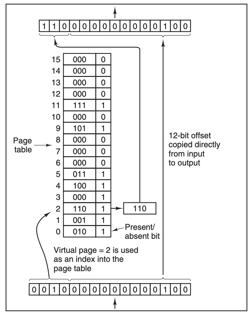 Consider the page table in the following picture, translating 16 bit addresses to 15 bit ones:
