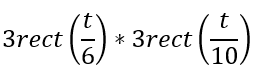 What is the overall amplitude and the left & right edge labels of the following convolution result?