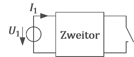 Ein Zweitor wird ausschließlich mit idealen Leitungen und ohmschen Widerständen aufgebaut. An das Primärtor wird die Gleichspannung angelegt. Mit einem Schalter kann auf der Sekundärseite wahlweise ein idealer Leerlauf oder ein idealer Kurzschluss eingestellt werden.
