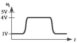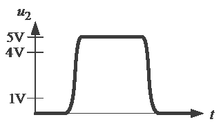 Zwei CMOS-Inverter mit der Speisespannung werden kaskadiert. (Für beide Inverter gilt , , .) Die Eingangsspannung hat den folgenden Zeitverlauf: