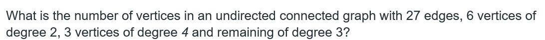 Let G(V, E) be an undirected graph with l edges. Then the sum of degree of all vertices is equal to