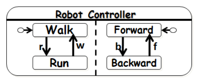 Consider the following state machine diagram that models the state behavior of the RobotController class. Which one of the following is an infeasible state for a RobotController?