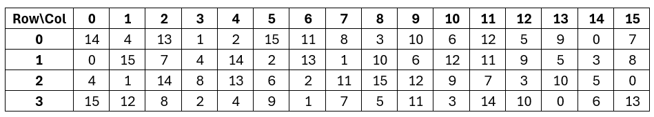 Given the following S-Box (S1) and 6-bit input, determine the 4-bit output from the S-Box.