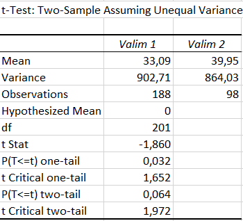 Mõlemast kogumist võeti üks valim (sõltumatud valimid) ja testimine viidi läbi programmis Excel. Lisatud on Exceli aruanne. Kumb hüpotees tuleb vastu võtta?