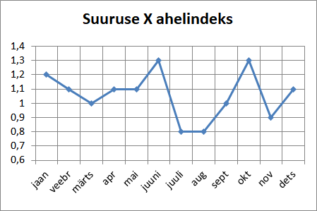 Joonisel on toodud suuruse X ahelindeksi dünaamika. Märgi ära, millistel kuudel jäi suuruse X väärtus samaks, võrreldes eelmise kuuga.