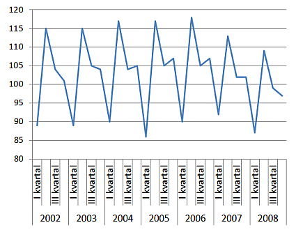 Diagrammil on toodud suuruse X ahelindeksi dünaamika. Millal suurus X vähenes, võrreldes eelmise aastaga?