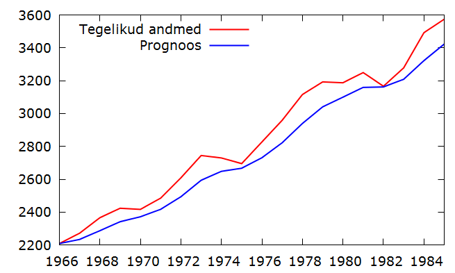 Milline on diagrammil toodud prognoosi korral prognoosi keskmine viga?