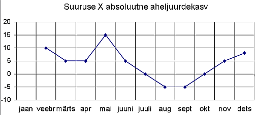 Diagrammil on toodud suuruse X absoluutne aheljuurdekasv. Millal jäi suurus X eelmise kuuga võrreldes samaks?