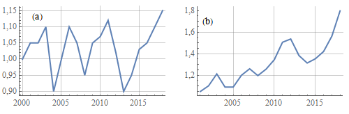 Ühel diagrammil on suuruse X alusindeks, teisel sama suuruse ahelindeks. Kummal diagrammil kumb indeks on?