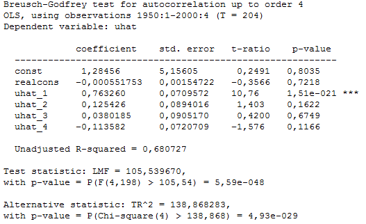 Jääkliikmete autokorrelatsiooni testimiseks kasutati Breusch-Godfrey testi. Millised järeldused on õiged?