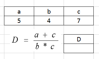 Sisestada Exceli valem väärtuse D leidmiseks, kui lahtritele on antud vastavad nimed.