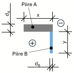 Antud on hoone nurgasõlme arvutusmudeli skeem, kus liituvad piire A (paksus d = 0.39 m, soojusläbivus U