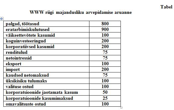 Arvuta SKP väärtus kulutuste meetodil alltoodud tabeli abil.