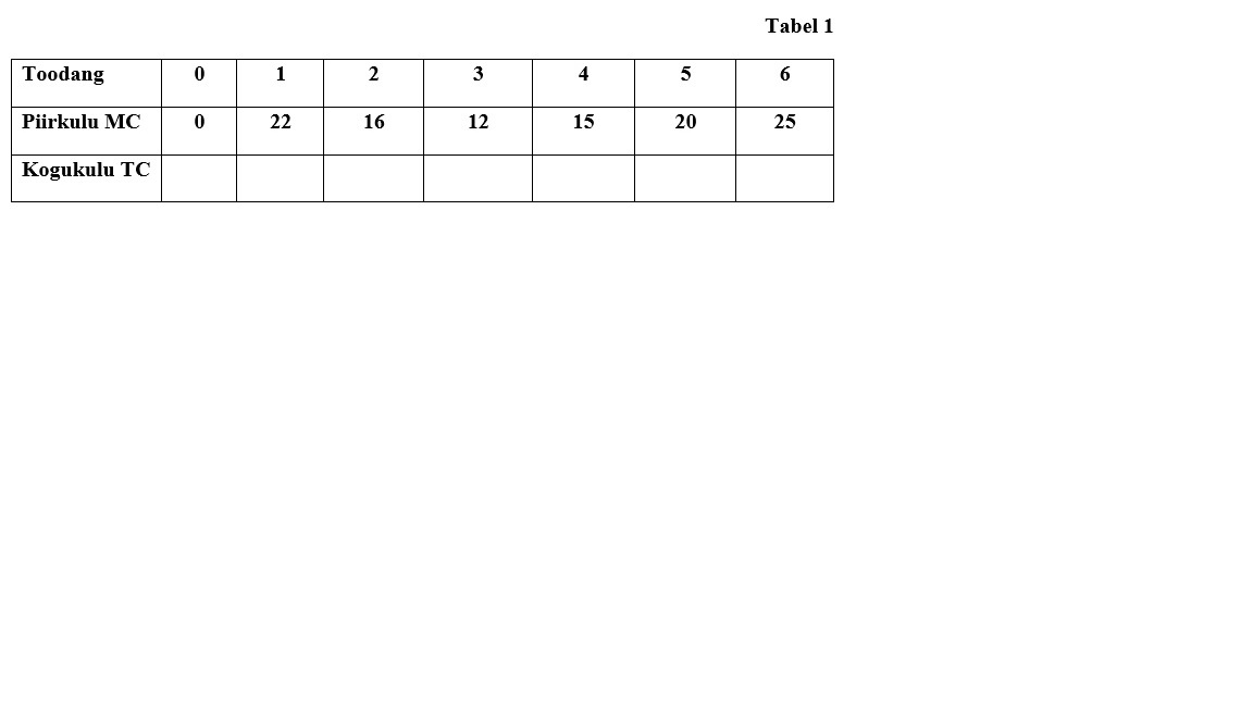 Tabelis 1 on toodud ettevõtte toodangu maht ja piirkulu. Tegemist on pika perioodiga. Leia kogukulu juhul, kui ettevõte toodab 5 ühikut!