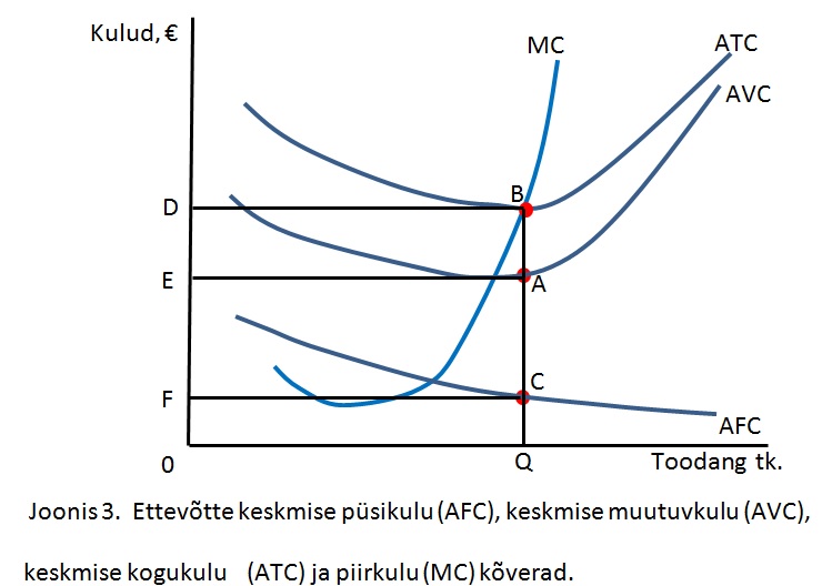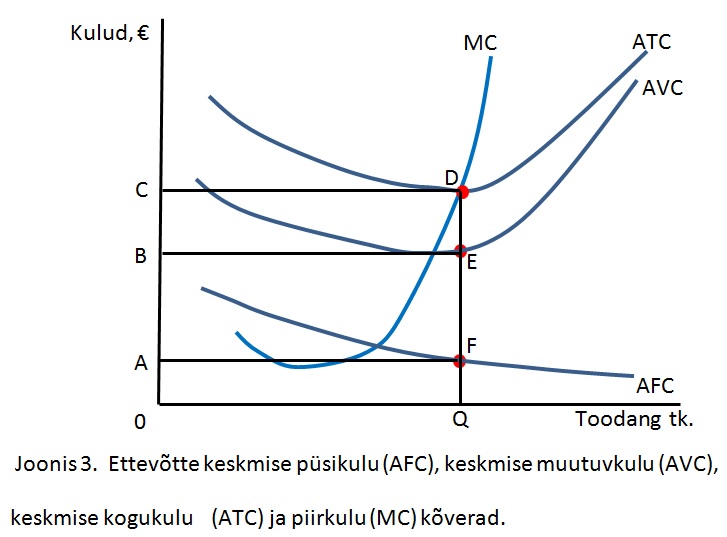 Joonisel 3 on toodud ettevõtte erineva kulukõverad. Vasta joonise 3 baasil missugune pindala või lõik vastab keskmistele kogukuludele.