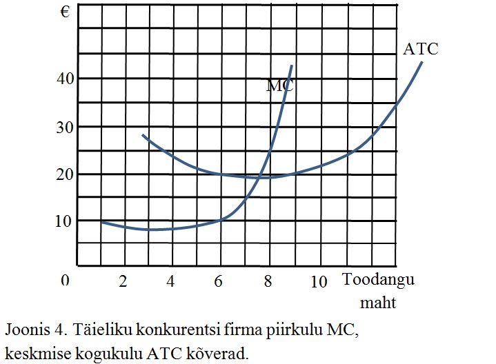 Joonisel 2 on toodud täieliku konkurentsi turu firma keskmine kogukulu (ATC), keskmine muutuvkulu (AVC), piirkulu (MC) kõverad.