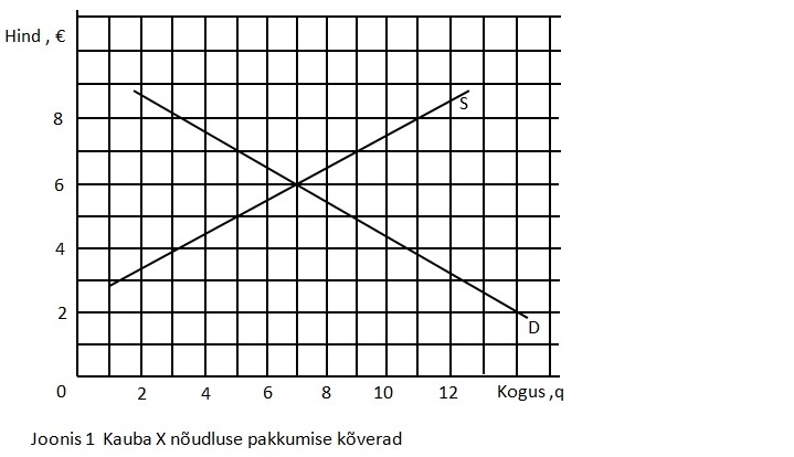 Kui mingil põhjusel on joonisel 1 kauba X hind 7 €, kui suur oleks antud kauba ülepakkumine?
