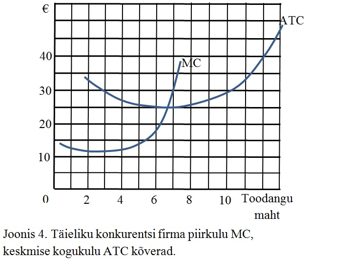 Joonisel 4 on toodud täieliku konkurentsi firma piirkulu ja keskmise kogukulu kõverad. Eeldusel, et ettevõtte on pika perioodi lõpus ja toodab optimaalset kogust, leia kui suur on ettevõtte majanduslik kasum.