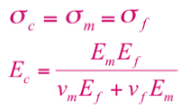 A composite containing carbon fibres in epoxy resin is loaded in a direction parallel to the reinforcing fibres. If there is 40 vol% fibres, modulus of the carbon fibres is 280 GPa and modulus of epoxy is 2.6 GPa, determine the modulus of the composite. Use this equation to calculate the modulus of the composite: