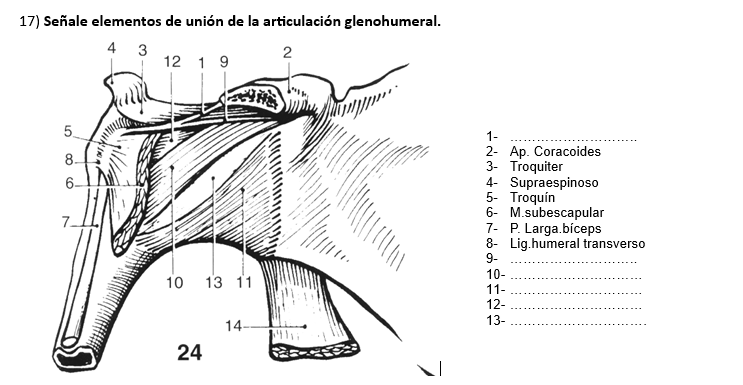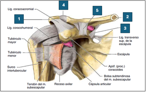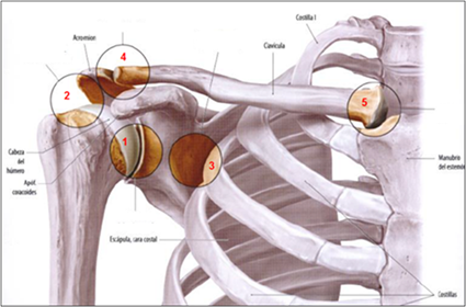 Señale en el siguiente grafico las 5 articulaciones que componen el complejo articular de hombro: