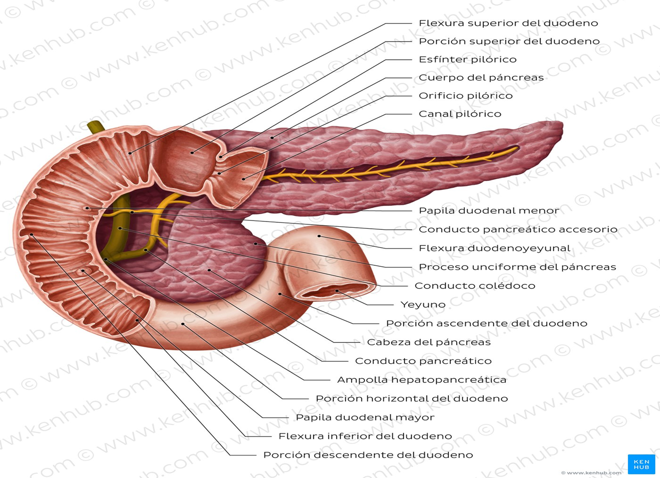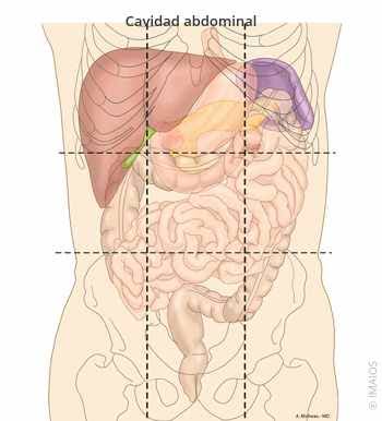 Según la siguiente imagen: Escribir a qué sector en la división topográfica del abdomen se hallan las estructuras marcadas.