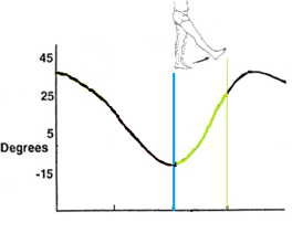 De 50 à 75% du cycle, la hanche effectue une flexion.