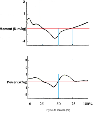 Chez un patient avec une prothèse de cheville, le coût est de 6 J/kg m en préopératoire pour une vitesse de marche de 2 km/h et de 3 J/kg m en post opératoire pour une vitesse de marche de