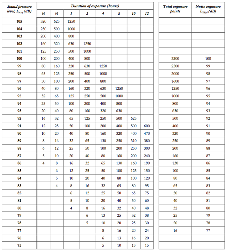 L'utilisation d'un équipement de protection auditive est recommandée pour un travailleur exposé à ....... dB(A) pendant ...... h. Complétez les éléments manquants (une seule bonne réponse).