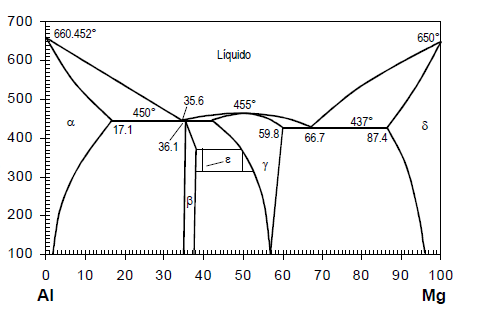 En una situació d'equilibri, el percentatge de fases presents a 200 ºC per un aliatge amb un 92% de magnesi són: