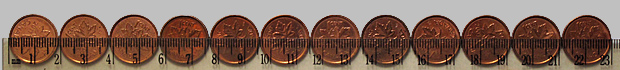 Mesure de 12 pièces alignées et division de la mesure par le nombre de pièces pour déterminer d: