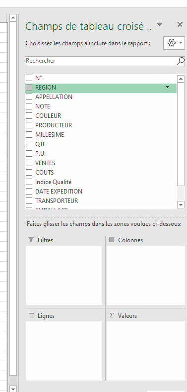 Que vais-je obtenir si je place le champs Région en "Lignes" et en "Valeurs" ?
