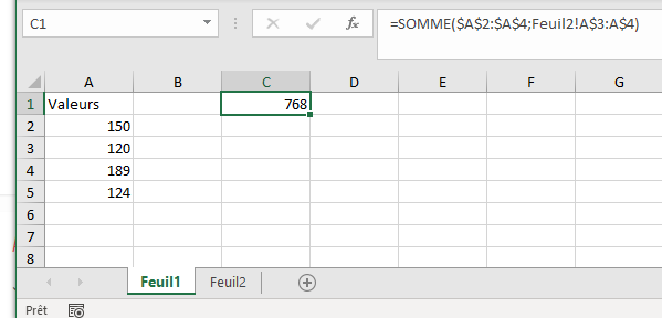 En vous basant sur le tableau ci-dessous, quelles sont les types de références utilisées dans le calcul de la SOMME ?