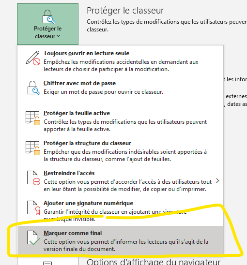 Si j'active la commande "Marqué comme final" :