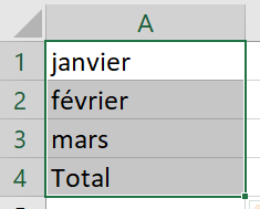 Je veux déplacer le contenu de A1:A4, je clique sur :