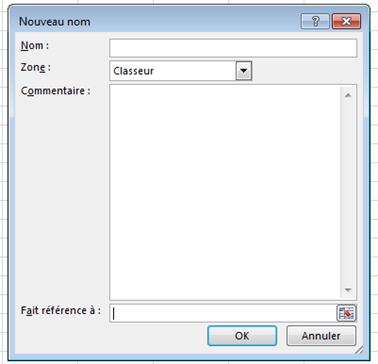 Vous voulez donner le nom « MaPlage » à la plage de cellules B10:C50 de la Feuil2. Que devez-vous écrire dans la zone « Fait référence » ?