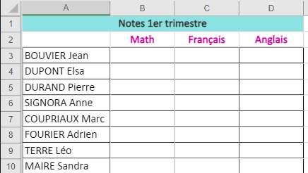 Dans la plage de cellule B3 : D10, vous devez imposer à l’utilisateur la saisie de notes comprises entre 0 et 20 avec décimales. Qu’allez-vous utiliser ?