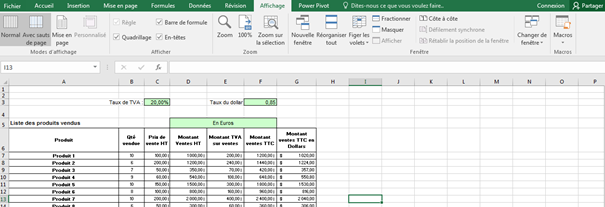 Quelle est l’icône qui permet de bloquer visuellement les colonnes A à C ? L'objectif étant de voir en permanence les colonnes A à C.