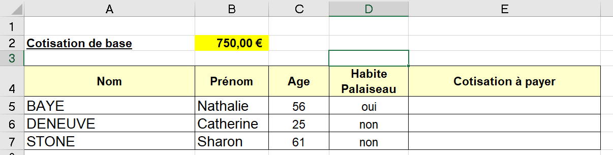 Quelle est la bonne formule en E5 ?