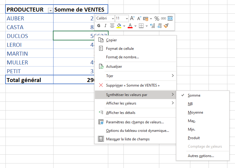 Pour remplacer la Somme par une Moyenne, je clique sur ?
