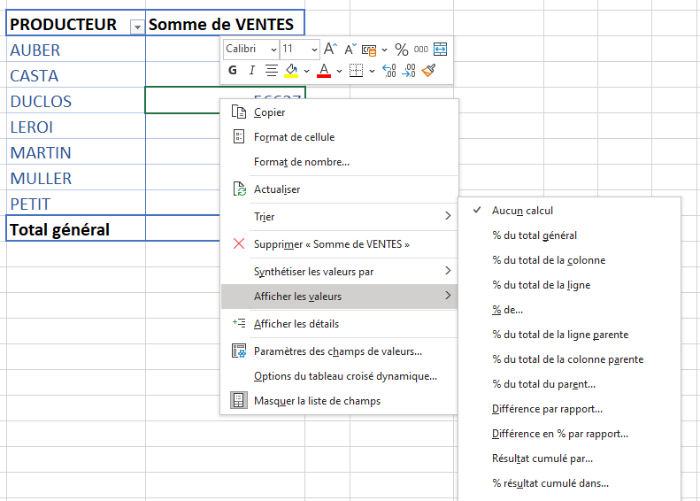Comment ai-je obtenu la colonne Pourcentage des Ventes ?